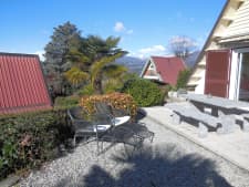 Aan zowel de voor- als de zijkant van het vakantiehuis vind je een terras, perfect om van de buitenlucht en het uitzicht te genieten. Voor het huis staat een robuuste, natuurstenen picknicktafel – ideaal voor een maaltijd in de open lucht of een ontspannen koffiepauze.